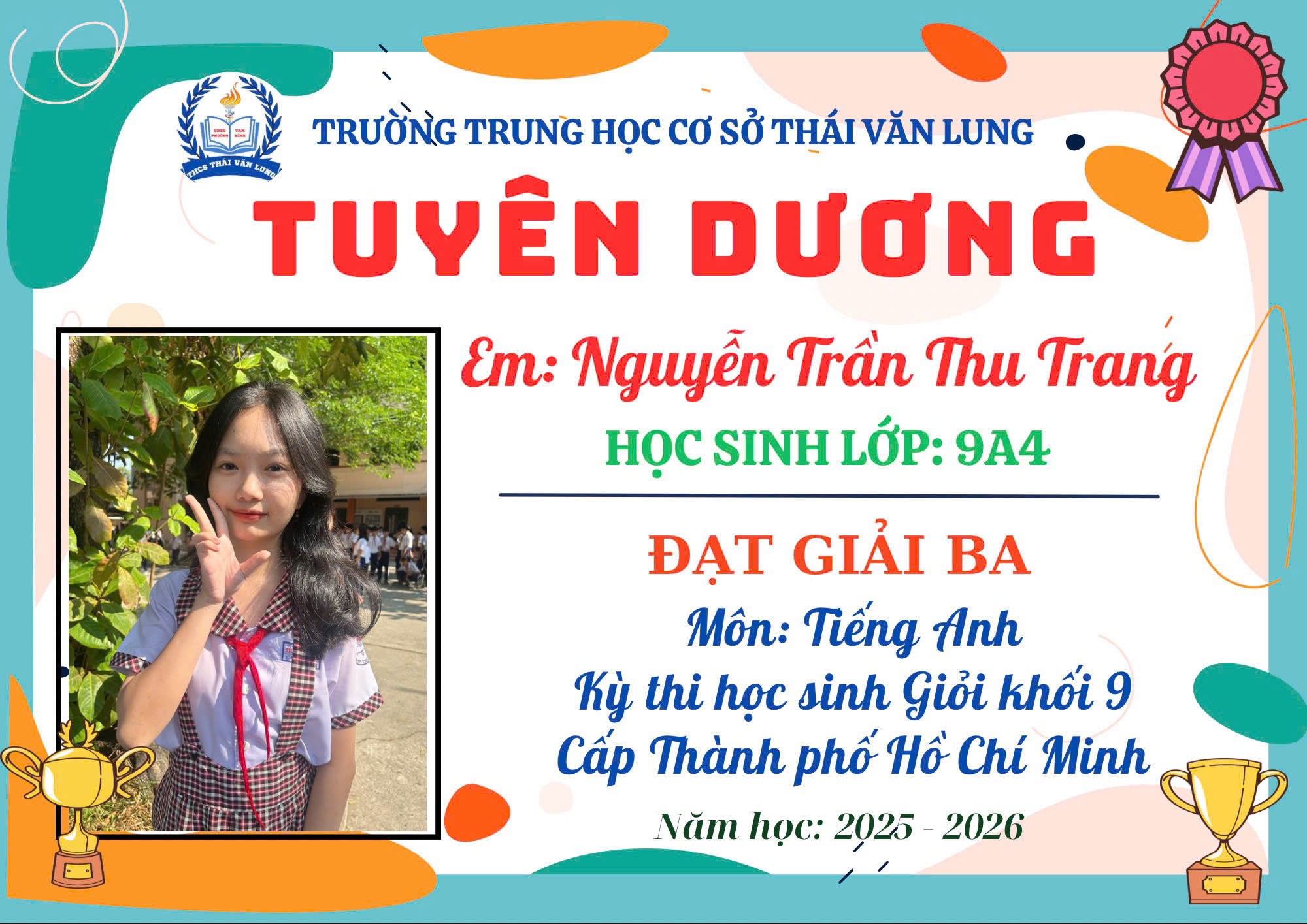 💐 Trường THCS Thái Văn Lung tự hào về các em!